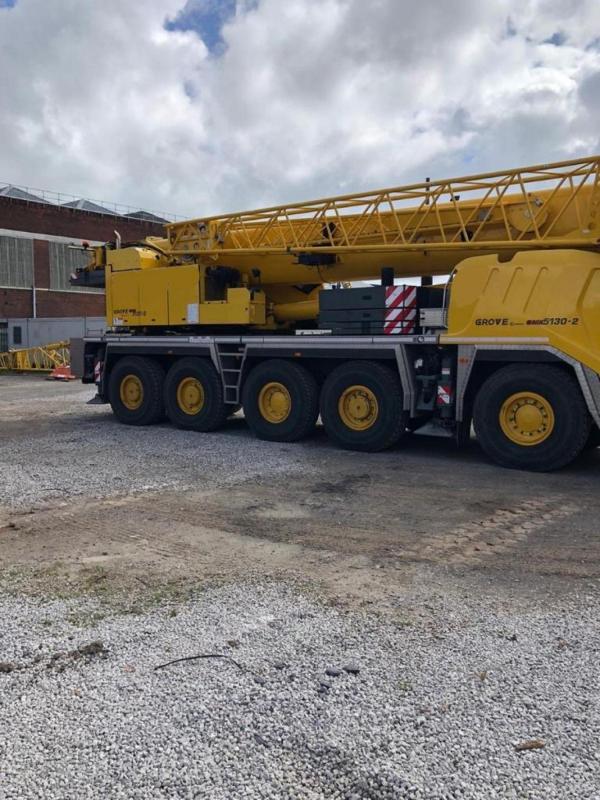 Grove GMK5130 Year 2016 Capacity 130 Ton Main boom 60m Extension jib 18m hydraulic No. Of winches 1 Counterweights 40.1 Ton Mileage 47273 KM Hook blocks 5 sheaves/3 sheaves/1 sheave and ball. Drive 10x6x10 tyres 16.00 R25 Chassis engine Mercedes OM502LA Upper engine Mercedes OM904LA