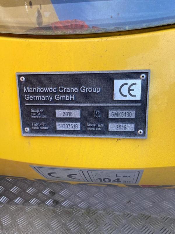Grove GMK5130 Year 2016 Capacity 130 Ton Main boom 60m Extension jib 18m hydraulic No. Of winches 1 Counterweights 40.1 Ton Mileage 47273 KM Hook blocks 5 sheaves/3 sheaves/1 sheave and ball. Drive 10x6x10 tyres 16.00 R25 Chassis engine Mercedes OM502LA Upper engine Mercedes OM904LA